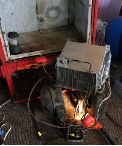 Now all the pieces were in place and ready to be reassembled. Jerry’s brother-in-law, Kevin, offered to come out in early 2020 for a week to help with the final reassembly. However, 2020 and its pandemic had other plans. This meant that Jerry and I would be the ones to complete the process, which I guess is only right since it started with the two of us. Parts of the Coke machine like the door and the refrigeration unit are heavy, so Jerry put his imagination to work to figure out how just the two of us could get everything accomplished, including getting the result up five steps and through two doorways into its final position. The answer involved moving the pieces into the selected room, then putting them together. Still, there was much trepidation and effort involved in the process.